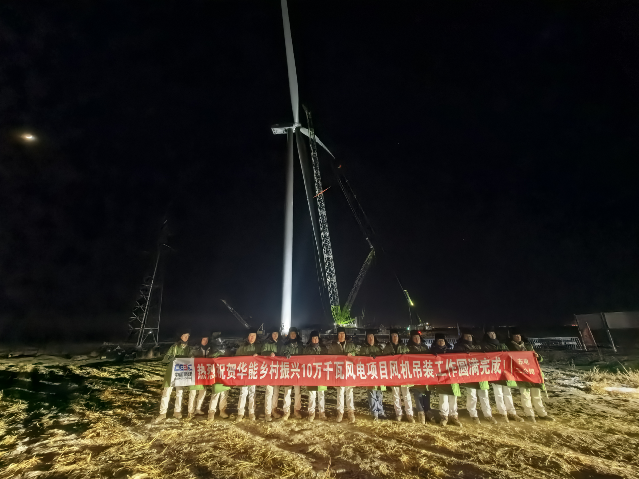由于该项目机位分布广,阻工现象多,运输条件差,且正值冬季,给风机吊装工作带来了不小的挑战。面对挑战,项目团队迎难而上,积极采取应对措施,根据风向和风力变化灵活调整吊装时间;加强对施工人员的安全培训和教育,配备齐全防寒保暖装备和安全防护措施。同时,设立攻关小组,积极协调各参建单位,保证施工现场“货到即用,吊必成功”的状态。