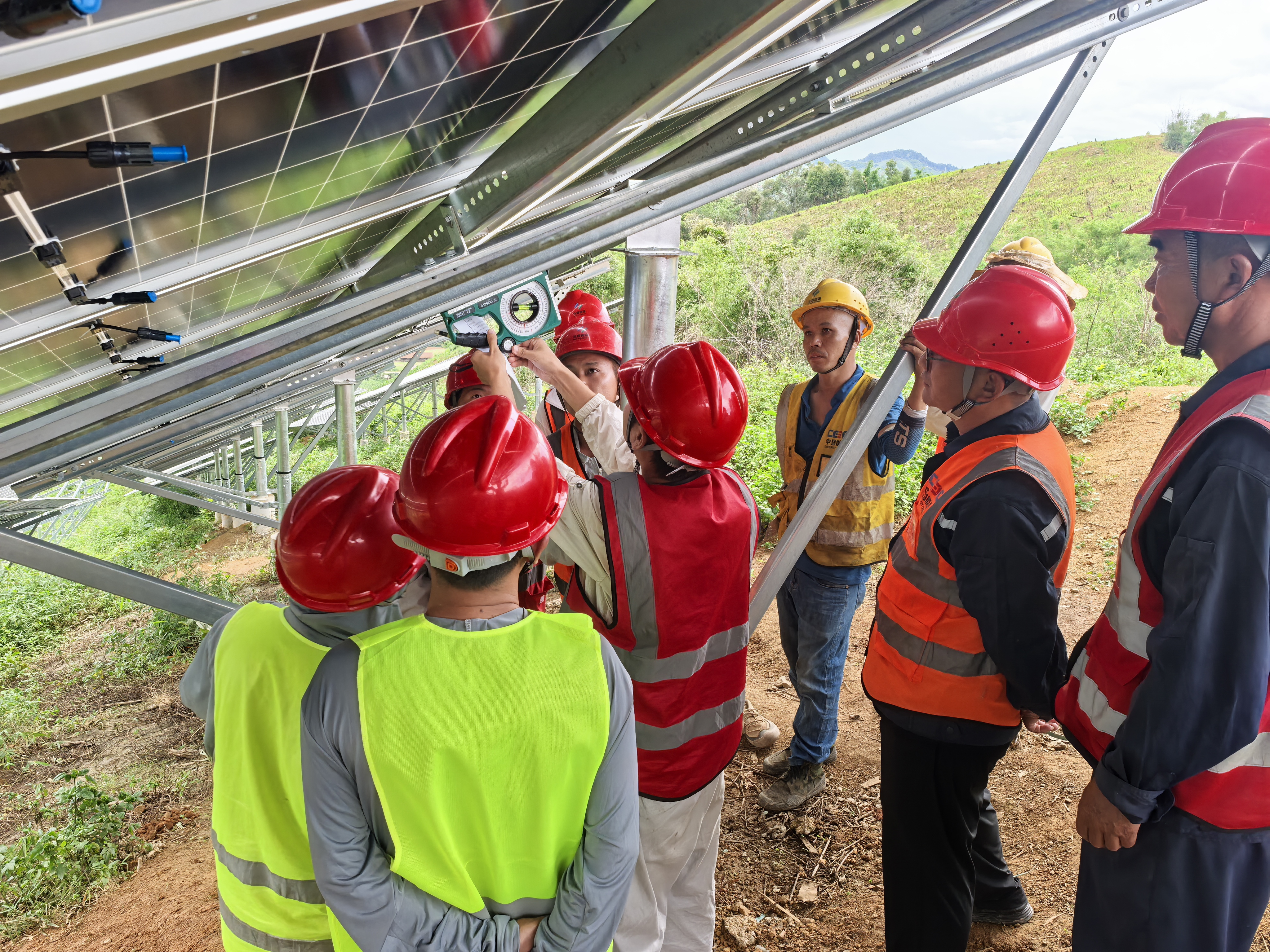 探索更具当地实际的可持续解决方案。项目全过程,不仅严格遵守中国和老挝的环境保护法律法规,更从老挝光伏产业发展所面临的环保挑战角度出发,探索在当地更具有操作性和可持续性的解决方案,让生态文明理念扎根在老挝大地上。如广泛设立“水土保持施工示范区”,用于试点不同地表防尘方式、边坡生物护养技术,定期对种植植被进行存活率跟踪,为未来在更多老挝光伏项目中推广生态友好型施工技术积累经验。