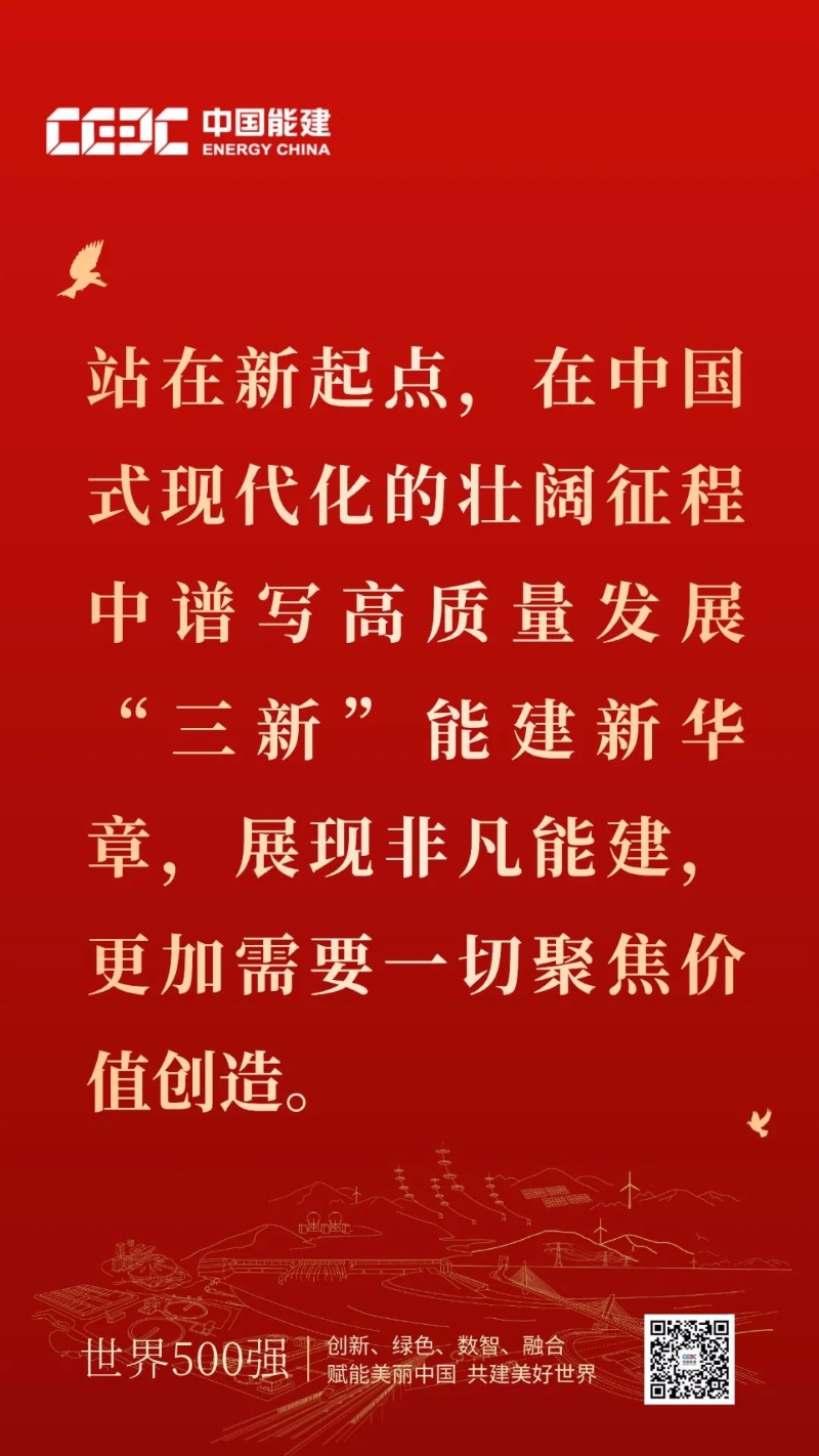 一切聚焦价值创造,是中国能建新一届领导班子组建以来,积极追求的“三大使命”的核心与灵魂,也是中国能建新签合同额连续三年实现高速增长,在站稳万亿平台基础上再创新高,各项主要生产经营指标均实现快速增长的关键法宝,更是实现业务发展布局与路径全面优化,管理效率和品质显著提升,合力、向心力、凝聚力进一步增强的深刻启示。站在新起点,在中国式现代化的壮阔征程中谱写高质量发展“三新”能建新华章,展现非凡能建,更加需要一切聚焦价值创造。